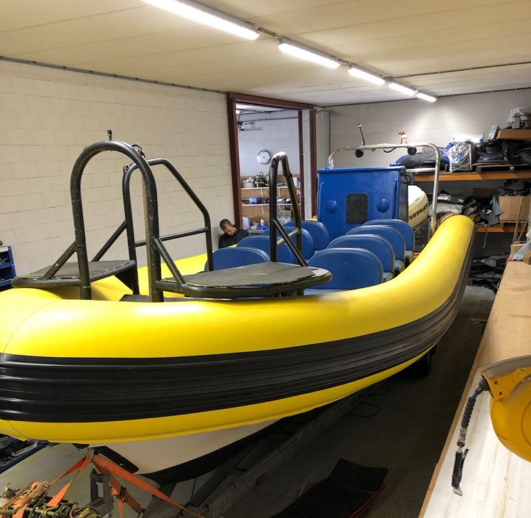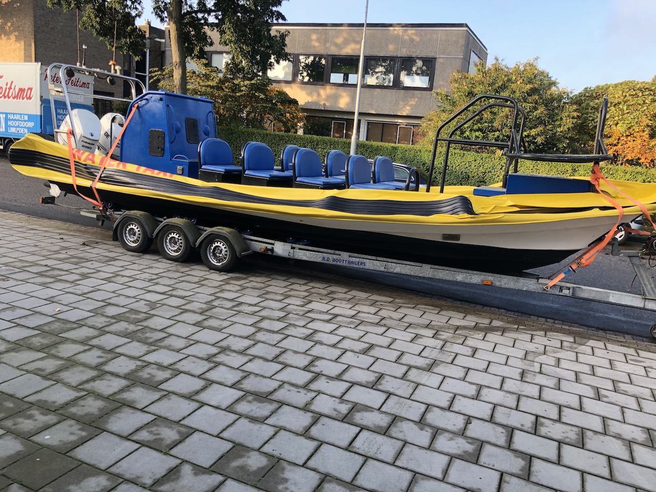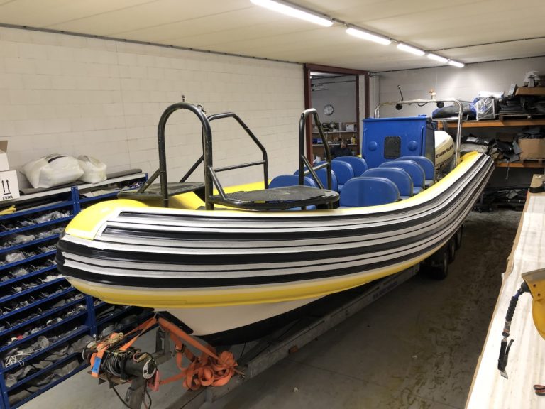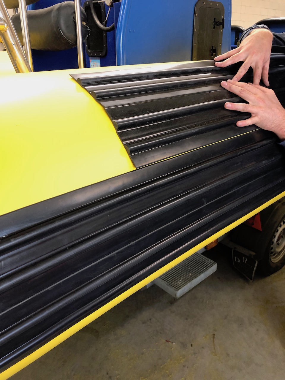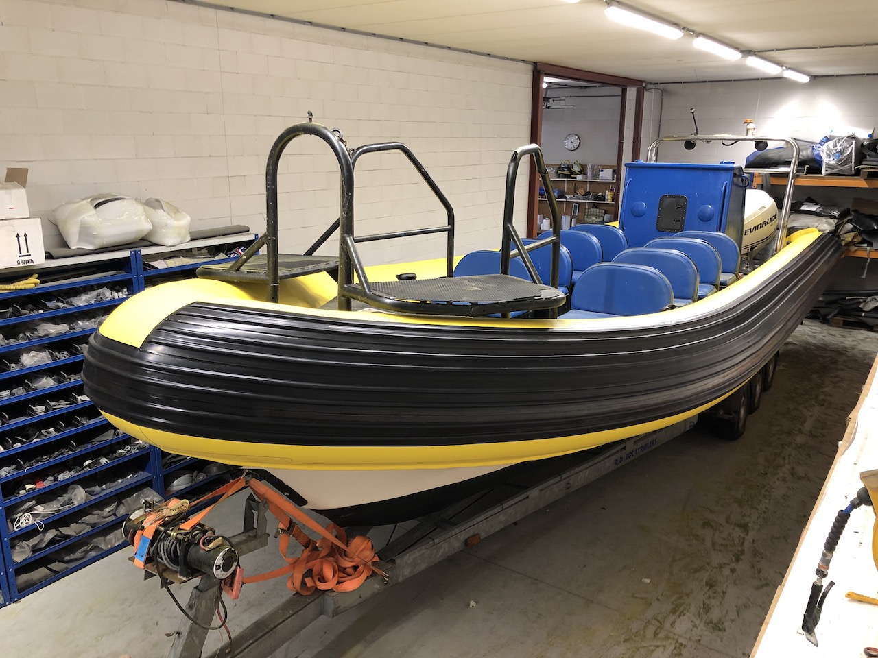 We hebben een compleet nieuwe tube gemaakt in de kleur Colorado Geel (Orca Hypalon 866) die perfect past bij de Caribische sfeer. De tube heeft 9 luchtkamers met overdrukventilen. We hebben extra stootlijsten gemonteerd, in totaal vier strips ter bescherming bij het aanmeren tegen cruiseschepen